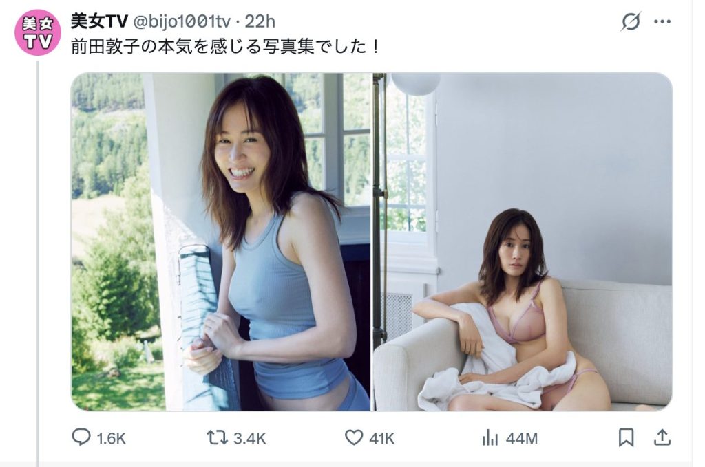添付されていたのは、元AKB48絶対的センター・前田敦子(あっちゃん)の最新写真集『Beste』(講談社、2026年2月13日発売)からの大胆カット。